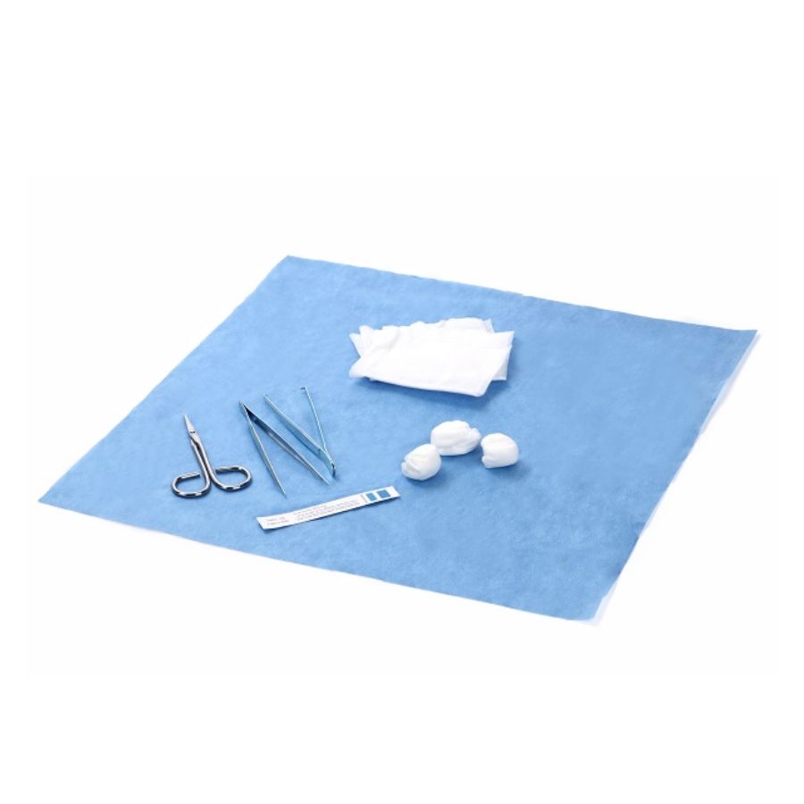 스펀레이스 볼, 35g/m² 스펀레이스, 3개 일회용 드레싱 겸자, 금속, 뾰족한 팁, 12cm, 1개 조직 겸자, 금속, 12cm, 1개 스펀레이스 패드, 14.5 x 19.35cm, 접힌 크기 7.25 x 9.75cm, 4겹, 3개 봉합사 제거 가위, 금속, 14cm, 1개 트레이, 17 x 11cm, 1개 랩, 40 x 40cm, 35g/m² SMS 부직포, 1개 살균 표시 카드, 1개 |